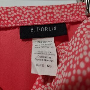 B. Darlin Ruffled Layered Sleeveless Mini Dress, Pink With White Spots.
