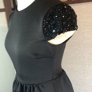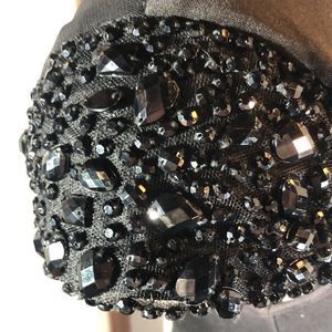 B.Darlin black / sz 3/4 glass rocks accent on cap sleeves/exposed zipper/party