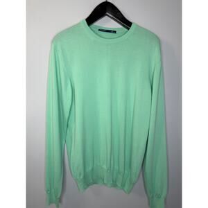 B.Draddy Men's Crew Neck Sweater Cotton Performance Golf Made in Italy Green L