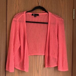 BE BY CHETTA SHORT LIGHTWEIGHT SHRUG SWEATER SIZE L ORANGE 3/4 SLEEVE