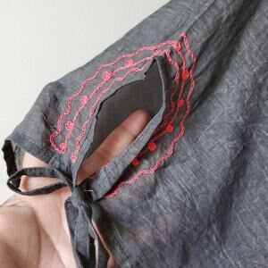 100% Cotton light a touch sheer. One Size Fits up to a Large. See the bust measurement.