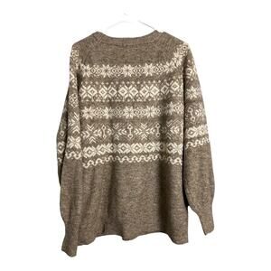 BE Cool Faire Isle Print Knit Sweater Pullover M/L Beige Cream Winter Apres Ski
