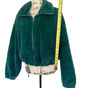 BE FORE DAWN COAT JACKET FULL ZIP MOCK NECK SZ 8 EMERALD GREEN FAUX FUR COZY