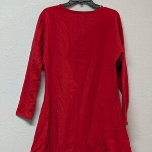 A stylish red dress with center front slit making it more comfortable to wear. Great for date night, party, meetings, and/or everyday casual. New and sealed.