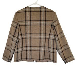 BEA Classics Wool Blend Open Blazer Womens 12 Vintage Neutral Plaid Fully Lined