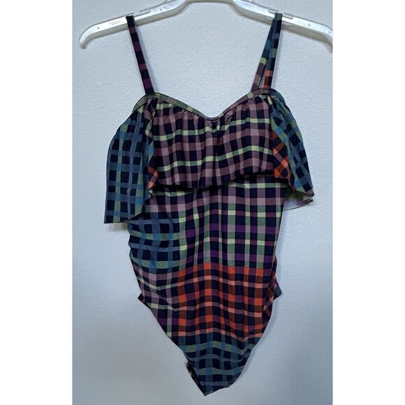 BEACH BUMP by MOTHERHOOD MATERNITY Modest Multi Gingham Plaid 1 pc Medium Padded