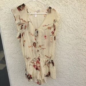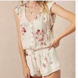 BEACH BUNNY Niko Romper. Short sleeve with metallic button front with elastic at waist. Size M. A1