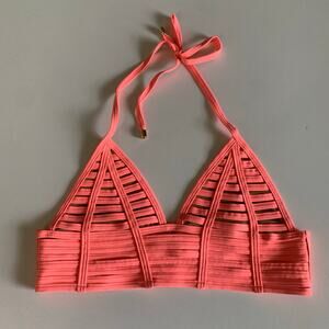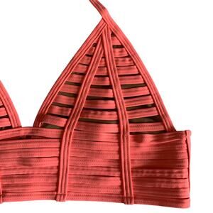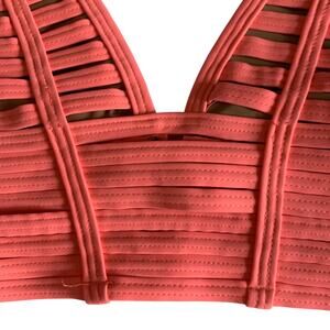 BEACH BUNNY Swim Top Small Hard Summer Long Line Triangle Bikini Bralette Coral