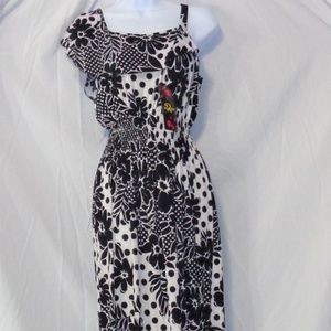BEACH FASHION HAWAIIAN STYLE BLACK FLORAL PRINT FULL LENGTH SUNDRESS SIZE LARGE