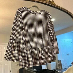BEACH LUNCH LOUNGE CHECKERED PEPLUM TOP