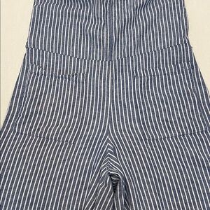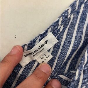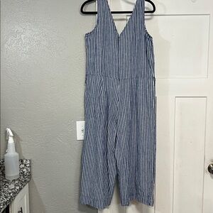 Women’s blue & white Beach Lunch Lounge linen/cotton blue & white striped jumpsuit. Size Large. Good gently pre owned condition