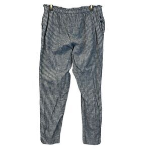 BEACH LUNCH LOUNGE Paperbag Pants Women's Large Blue White Striped Linen Blend