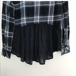 BEACH LUNCH LOUNGE Tartan Plaid Ruffle Peplum Button Down Shirt Top Blouse