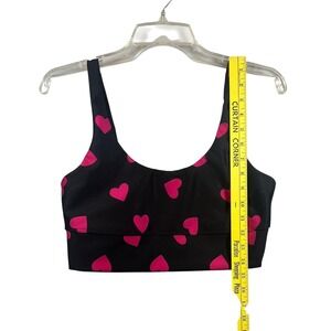 BEACH RIOT SPORT Leah Top- Tough Love Sports Bra, Black with Red Hearts, Size XL