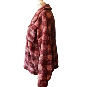 BEACH RIOT WOMEN’S CUTE CHECKERED MAROON TEDDY JACKET SZ MEDIUM