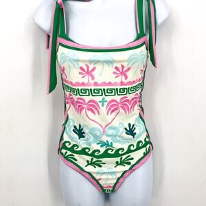 BEACH RIOT Women's Shona One Piece Swimsuit Small White Tropical Palm Print NWT