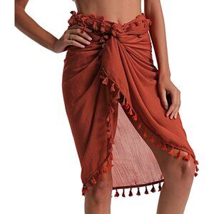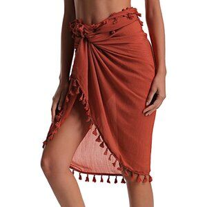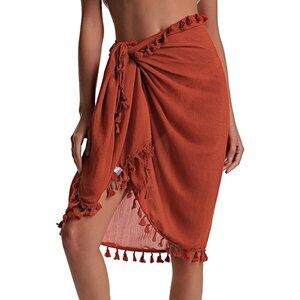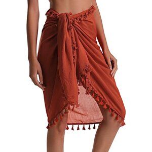 BEACH Sarong Pareo Womens Semi-Sheer Swimwear Cover Ups 016-orangered-short