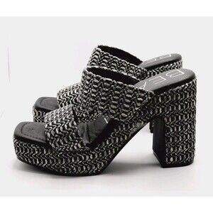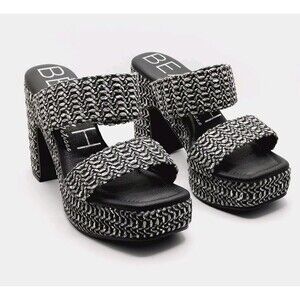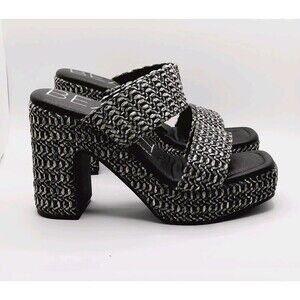 BEACH by Matisse Vegan Gem Platform Block Heels Black Double Strap Sandals 5.5