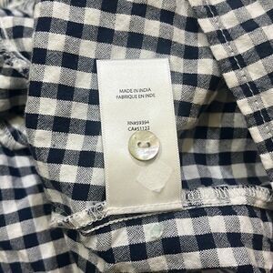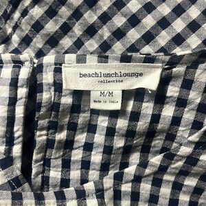 Casual dressy comfy cozy black & white gingham Black and white printed cotton (100% Cotton). Shift. 3/4 sleeves. Crew neckline. Back keyhole with button closure. 35" from shoulder to hemline. Ruffle trimmed bell sleeves and gingham checks impart style to this easy-to-wear dress by Beach.Lunch.Lounge