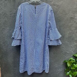 BEACH LUNCH LOUNGE GINGHAM RUFFLE 3/4 SLEEVE MIDI DRESS MEDIUM