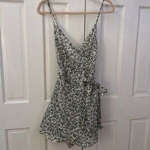 BEACHWOOD WRAP SKIRT CAMI STRAP ROMPER WHITE/GREEN