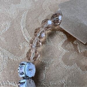 BEADED BRACELET SILVER BROWN BEIGE STRETCH GEM BOHO