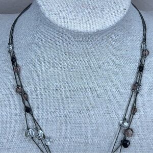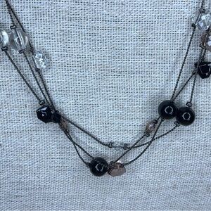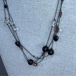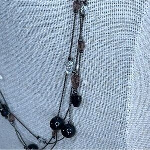 BEADED NECKLACE CHROME SILVER BLACK LAYERED BOHO BOHEMIAN