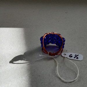 THIS "BLUE Q RING" IS AN EYE CATCHER! IT'S 6 1/2 IN SIZE. FEEL FREE TO BUNDLE WITH OTHER JEWELRY. THE BEADS ARE A BEAUTIFUL BLUE WITH BRASS WIRING WOVEN THRU. THE SELLING PRICE FOR THIS RING STAYS AS IS BUT IT CAN BE BUNDLED WITH OTHER JEWELRY.