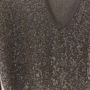 Very high quality and heavy beading. Arms are not beaded. V-neck. So flattering. Worn for New Years.