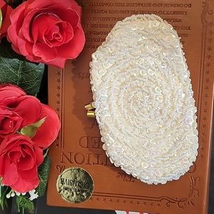 BEADED Sequined Coin Purse With Chain tuck in the chain or carry it with the chain EUC L522 001