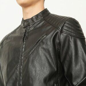 BEARCLIFF Men's Full-Zip Faux Leather Jacket Size M In Black