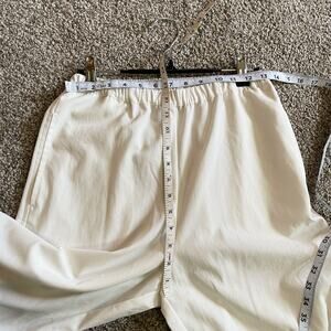- Description: Crafted from a lightweight Japanese drill, the elastic wide leg pant in ivory feature an elastic waist band and pockets. Composition: Main 98% Viscose 2% Elastane, Lining 100% Viscose. Care: Dry Clean Only. Fabric sourced from Japan. Made in Sydney, Australia.