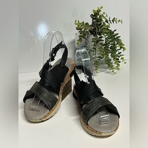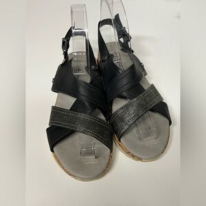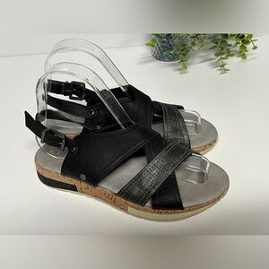 🛍️BEARPAW Black and gray SHELLI sling back sandals size 6.