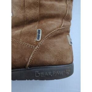 BEARPAW Brown Suede Side Zip 14" Tall Boots Sheepskin Wool lining Women's Size 5