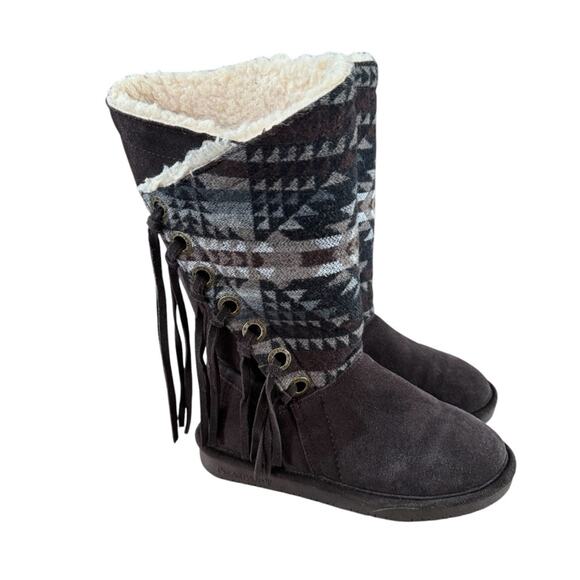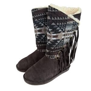 BEARPAW Kathy Winter Suede Snow Boots Hickory Aztec back Insulated Size 6