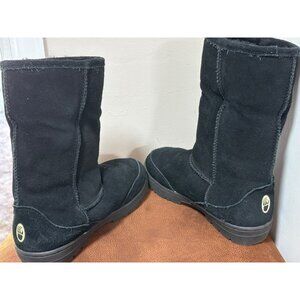 BEARPAW MEADOW MID-CALF SUEDE WINTER BOOTS BLACK FLATS WOMENS SIZE 6