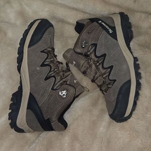 BEARPAW TAUPE LARS HIKING BOOTS, SIZE 10 - LIKE NEW