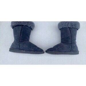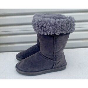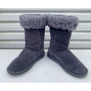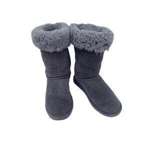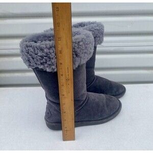 Bear Paw Tall Womans Size 8 Gray Suede Upper Sheepskin Wool Lined Boots Slip-On