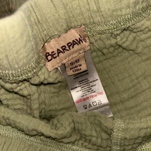 Olive textured fabric with BearPaw branding. Comfortable and stylish.