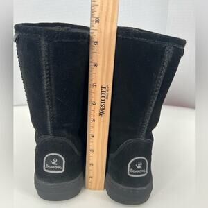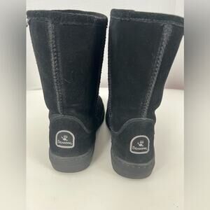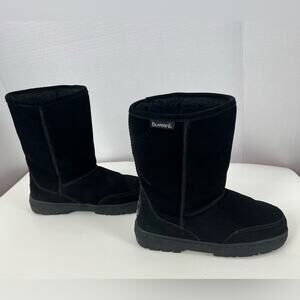 BEARPAW WOMEN'S EVA SHORT MIDCALF PULL ON FLAT SUEDE WINTER SNOW BOOT BLACK 7/8
