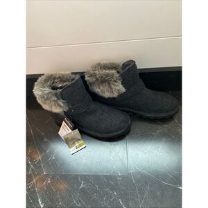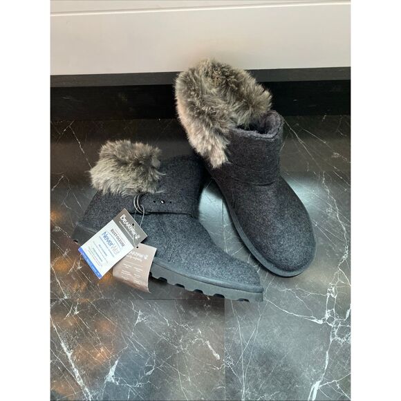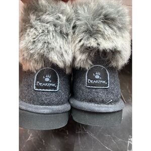 BEARPAW Women's Gray Wool Blend Faux Fur Cuff Winter Ankle Boots Size 9