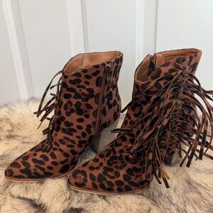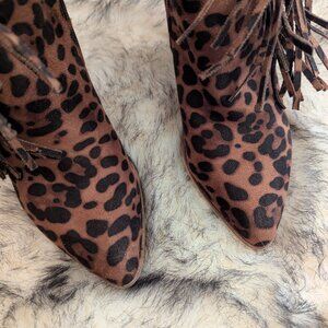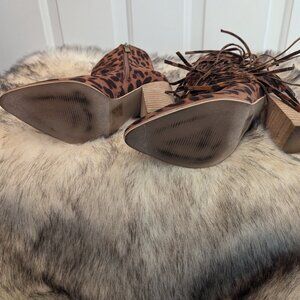 BEAST Cheetah Bootie Size 6.5 are a cute bootie to add to your closet. I only wore them a couple of times. They are 6" high and the heel is 3 3/4" high. Please refer to the pictures for the condition of the booties.