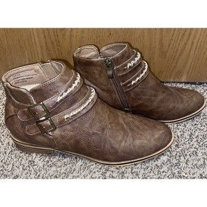 BEAST FASHION Buckle Zip Detail Women’s Ankle Boots, Size 8.5