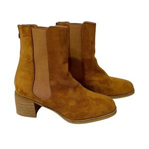 BEAST FASHION Chelsea Ankle Boots Womens Size 11 Suede Block Heel Zip Bo…