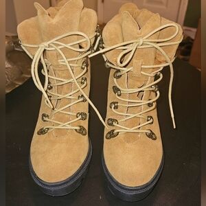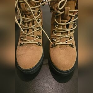 BEAST FASHION Tan platform chunky lace up work boots. Size 7