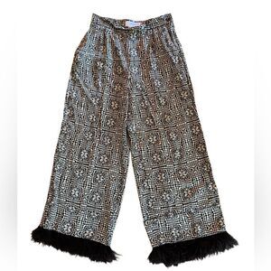 BEATRICE B Italy Women's Wide Leg Ostrich Feather Trim Satin Sheen Pull On Pant