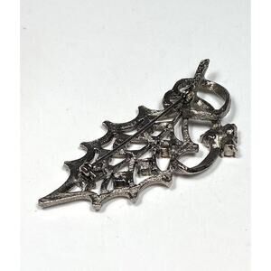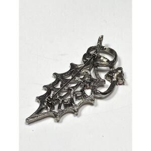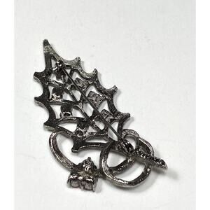BEATRIX Brooch Pin Leaf Designer Gunmetal Tone Rhinestones Vintage