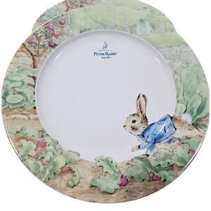 Bring the charm of Beatrix Potter's Peter Rabbit into your home with this set of four dinner plates. Each plate features a colorful design of the beloved character surrounded by a spring garden, perfect for Easter or any season. Made of high-quality porcelain, these round plates measure 10 1/2" in diameter and are ideal for serving meals with family and friends. Whether you're a fan of Peter Rabbit or simply enjoy whimsical dinnerware, this set is sure to delight.