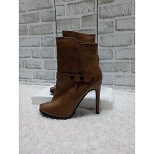 These BEAU + ASHE TACIE Punk Rock Tall Boots Booties in size 7 feature an open toe design with snap button closures and a high stiletto heel. They are brown in color with faux leather construction, making them suitable for various occasions such as parties, casual outings, formal events, and business settings. The booties have a solid pattern and are ankle-height, perfect for the summer, fall, and spring seasons.