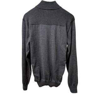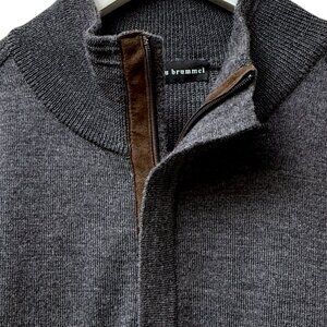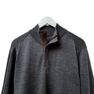 BEAU BRUMMEL Mens Wool Sweater S/m Italian Merino Gray 1/4 Zip Brown Suede